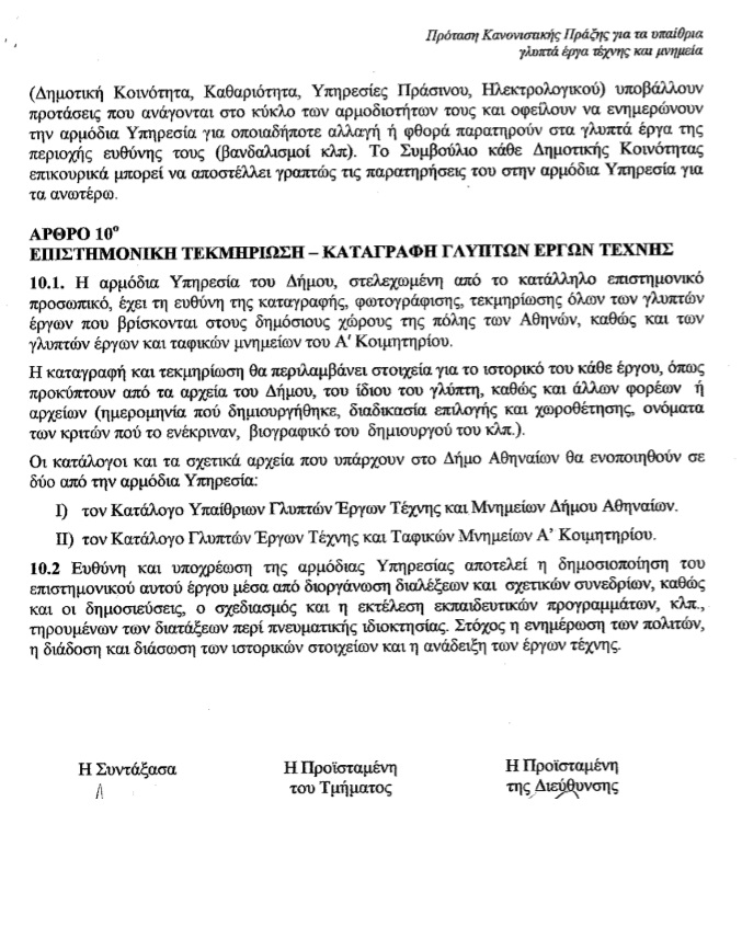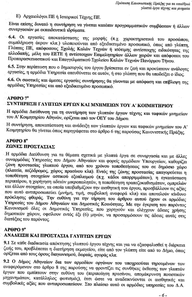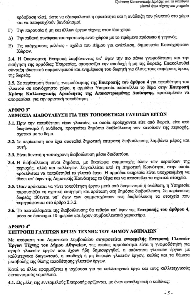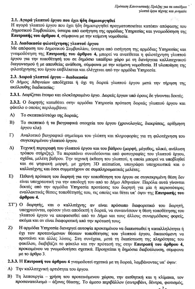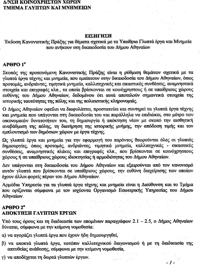 - Συζήτηση και λήψη απόφασης σχετικά με τα υπαίθρια γλυπτά έργα & Μνημεία που ανήκουν στη δικαιοδοσία του Δήμου Αθηναίων μετά την εισήγηση της Δ/νσης Κοινοχρήστων Χώρων με συνημμένο σχέδιο κανονιστικής πράξης, (σχετ..: ΑΠ.301589/25-7-14 έγγραφο του Τμήματος Υποστήριξης Οικονομικής Επιτροπής Ποιότητα Ζωής). Από αναβολή.