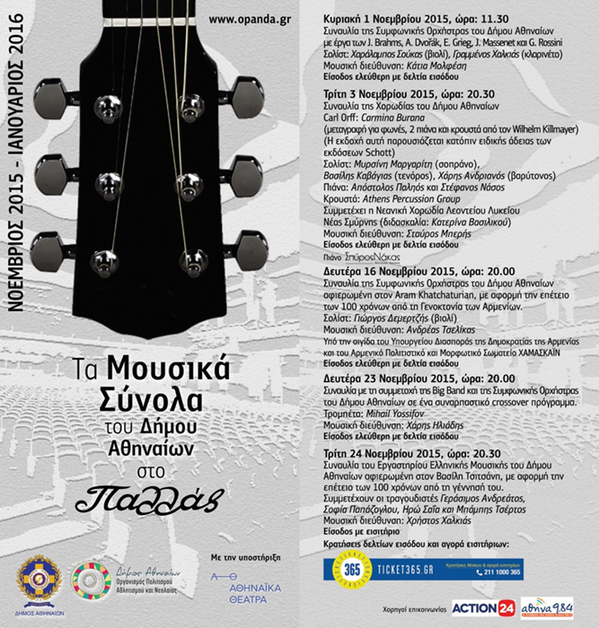 Εάν επιθυμείτε να παρακολουθήσετε κάποια από τις συναυλίες παρακαλούμε επικοινωνήστε στο τηλ. 210-9243760.