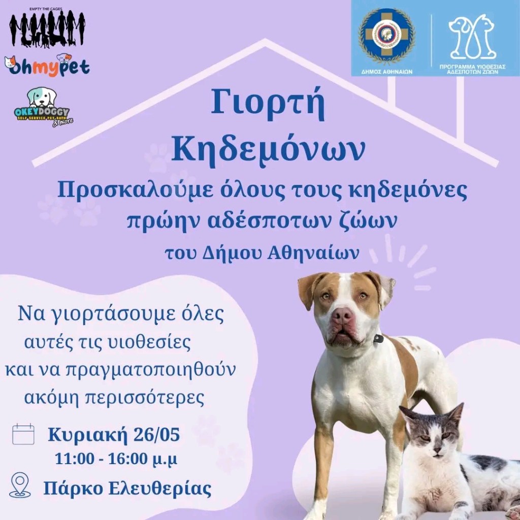 Αύριο Κυριακή 26 Μαΐου και ώρα 11:00-16:00 στο Πάρκο Ελευθερίας γιορτάζουμε όλες τις υιοθεσίες και είμαστε σίγουροι ότι θα πραγματοποιηθούν ακόμη περισσότερες