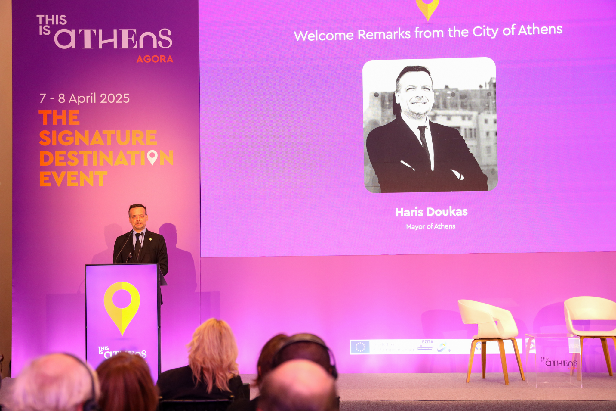 O Δήμαρχος Αθηναίων, Χάρης Δούκας, μεταξύ άλλων, τόνισε: «Η Αθήνα στο επίκεντρο του παγκόσμιου τουριστικού ενδιαφέροντος. Δεν είναι μόνο μια πόλη με σπουδαία ιστορία, αλλά κι ένας προορισμός με παρόν και μέλλον στον παγκόσμιο τουριστικό χάρτη. Το This is Athens – Agora επιβεβαιώνει τη δυναμική της πρωτεύουσας, φέρνοντας αυτές τις δύο ημέρες σε επαφή τους σημαντικότερους παράγοντες της παγκόσμιας τουριστικής αγοράς. Ως δημοτική αρχή, θέσαμε ως προτεραιότητα την ανάπτυξη του προορισμού, σύμφωνα με τους όρους της βιωσιμότητας και της διασφάλισης της ποιότητας ζωής των Αθηναίων. Έχοντας διενεργήσει τη Μελέτη Φέρουσας Τουριστικής Ικανότητας, προτού η πόλη έρθει αντιμέτωπη με σημάδια υπερτουρισμού, αξιοποιήσαμε τα στοιχεία της και ιδρύσαμε το Παρατηρητήριο Βιώσιμου Τουρισμού, προκειμένου να χαράξουμε τη βιώσιμη στρατηγική μας για την πόλη. Θέλουμε να αναδείξουμε την Αθήνα ως έναν σύγχρονο και φιλόξενο προορισμό, που προσφέρει αυθεντικές εμπειρίες όλο τον χρόνο στους επισκέπτες της και μία ευχάριστη και λειτουργική καθημερινότητα σε όλους όσοι ζουν στην πόλη».