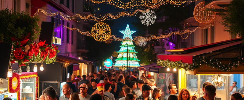 Παραμονή της Μεγαλύτερης Νύχτας του Χρόνου, η οδός Σαλαμίνος στον Κεραμεικό, υποδέχεται μια μικρή λατινοαμερικάνικη γιορτή: sandos που αχνίζουν, empanadas που μοσχοβολούν και βινύλια που σε «ταξιδεύουν» από το Ρίο μέχρι την Αβάνα. Ο πεζόδρομος αποκτά φωτεινή, πολύχρωμη αισθητική με… καλοκαιρινή διάθεση και χρώματα.