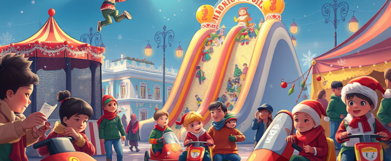 Οι μικροί φίλοι θα μπορούν να παίξουν με το τραμπολίνο, τη φουσκωτή τσουλήθρα, το pedal go – kart, να στείλουν γράμματα στον Άγιο Βασίλη αλλά και να δοκιμάσουν face painting!
