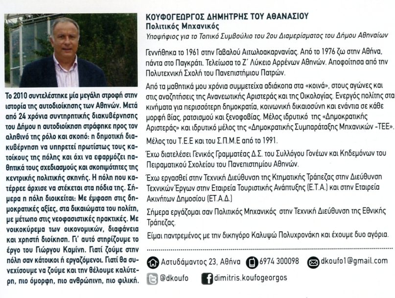 Επειδή εκτός από Δικαίωμα στην Πόλη έχουμε και δικαίωμα στην πληροφόρηση 🙂 πριν λίγο καιρό ξεκινήσα μέσα από τη σελίδα αυτή την προβολή των υποψηφίων για τη 2η Δημοτική Κοινότητα του Δήμου μας προκειμένου να ενημερωθούν όσο περισσότεροι δημότες και κάτοικοι ενδιαφέρονται.