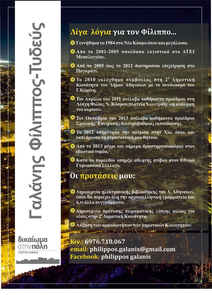 Σήμερα αυτός ο κύκλος της πληροφόρησης κλείνει με το υλικό που μου έδωσε η υποψήφια Αγγελική Τσουκάτου.